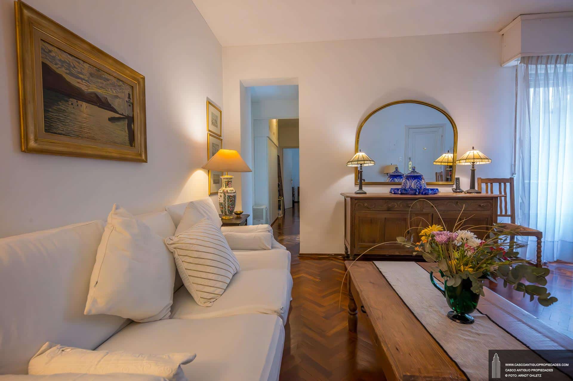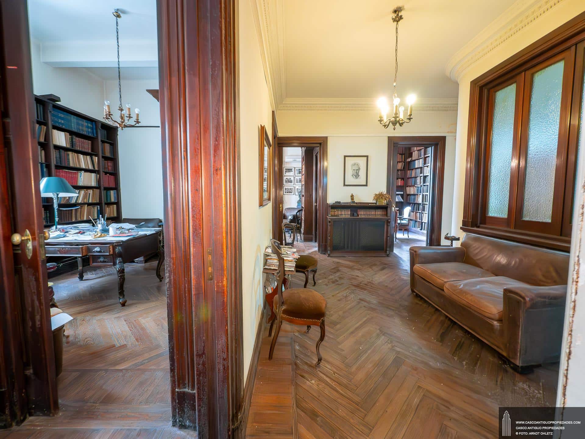 Amplio apartamento de estilo, construcción del año 1930, planta baja con 280 m2 edificados. Con dos entradas independientes por distintas calles. Consta de un recibidor,
