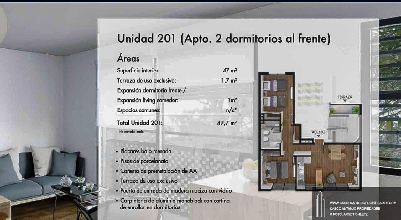 201 – 2 dormitorios 47 m2 + 1,70 de balcón. U$S 135.000,-